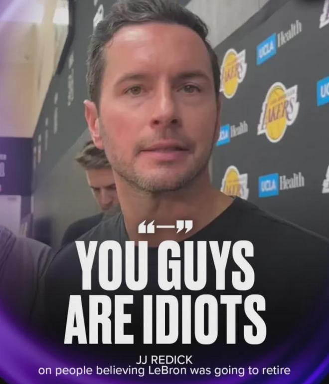 湖人主帅雷迪克则说得更直接:“你们都是白痴(You guys are idiots),现在我们都知道那是一个广告了。我们没有任何人对此大惊小怪。”