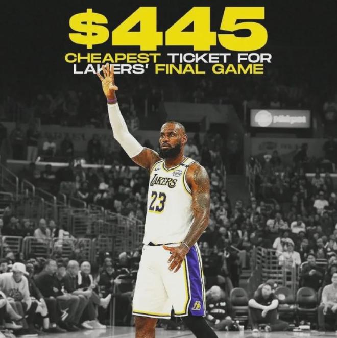 詹姆斯发了这则消息后,那场比赛的最低票价从85美元飙升到了445美元,而且已经有球迷下单预定球票了,都是真金白银的投入啊。
