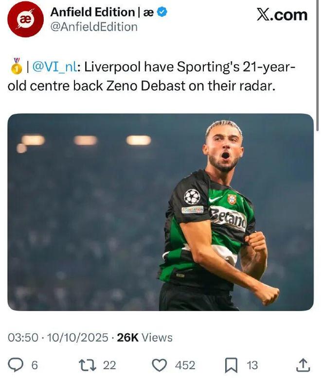 荷媒加葡媒:利物浦有意葡体21岁中卫德巴斯特,他在候选名单中排名前列。如果明年夏天无法搞定格伊,德巴斯特会是人选之一。
